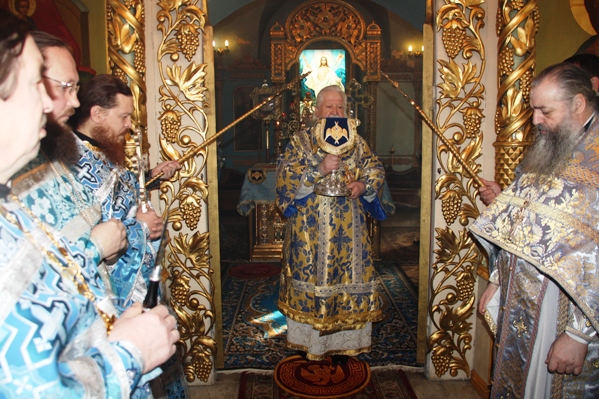 Служение митрополита Варнавы в монастыре в праздник Иверской Богородицы25 февраля 2011 г. в праздник Иверской Богородицы за Божественной литургией митрополит Варнава рукоположил в сан священника диакона Владимира Колчанова. Чтимый древний образ Иверской Божией Матери был передан из Краеведческого музея Чебоксар в 1990-х годах. Несмотря на мороз, был совершен крестный ход вокруг Троицкого собора монастыря. По окончании богослужения Его Высокопреосвященство поздравил наместника игумена Василия, братию и всех богомольцев с праздником Пресвятой Богородицы.