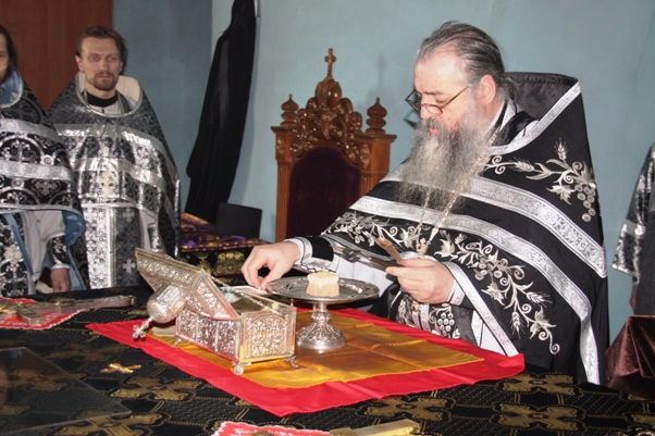 В пятницу игумен Василий возглавил соборное служение литургии Преждеосвященных Даров по окончании которого было освящено коливо. В пятницу вечером отец наместник с братией совершил богослужение с полиелеем святому Предтече Господню, а в субботу утром Божественную литургию. | |||