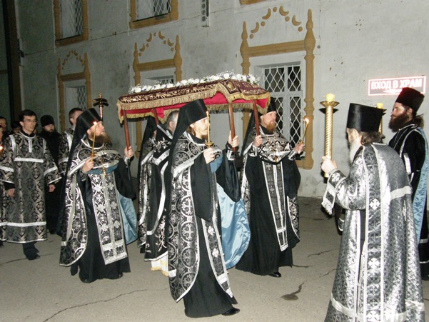 Богослужения в дни Страстной седмицыВ Великий четверг вечером было совершено богослужение Утрени Великого Пятка с чтением 12 Страстных Евангелий. Сонм монастырского духовенства во главе с отцом Василием молился у Распятия Господа. Богомольцы обители по традиции возжигали свечи на каждое евангелие. В Великую Пятницу днем был совершен чин изнесения плащаницы Господа Иисуса Христа. Ночью чин погребения Господа Иисуса Христа также возглавил наместник обители в сослужении духовенства монастыря. В Великую субботу рано утром была совершена Божественная литургия Василия Великого. | |||