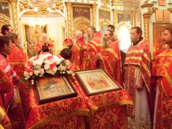 Богослужение с митрополитом Варнавой15 мая наместник монастыря архимандрит Василий сослужил митрополиту Варнаве в Божественной литургии в селе Никулино Порецкого района. Именно в этот день 16 лет назад, в 1995 году и именно в этом храме, отец Василий был рукоположен в сан иеромонаха. На престольный праздник святых страстотерпцев благоверных князей Бориса и Глеба приехали многие священники Порецкого благочиния. За богослужением настоятель храма иерей Илия Тарасиков был награжден правом ношения камилавки, а насельник Чебоксарского Свято-Троицкого мужского монастыря иеродиакон Иосиф - двойным орарем. По окончании молебна святым мученикам Борису и Глебу и крестного хода, Его Высокопреосвященство поздравил сослужащих клириков и прихожан со святой Пасхой и благословил молящихся. | |||