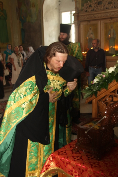 Соборное богослужение в праздник преподобного Сергия Радонежского и преподобномучениц Елисаветы и Варвары18 июля состоялось соборное праздничное богослужение во главе с наместником обители архимандритом Василием. Двойной праздник в день преподобного Сергия Радонежского и преподобномучениц Елисаветы и Варвары был отмечен всенощным бдением с литией. К празднику был подготовлен ковчег с частицами мощей преподобномучениц Елисаветы и Варвары. По окончании литургии отслужили молебен святым и все молящиеся смогли приложиться к мощам праведниц.