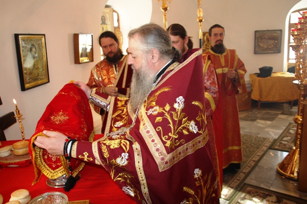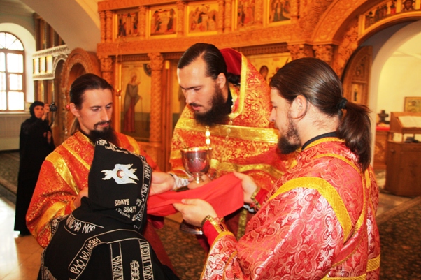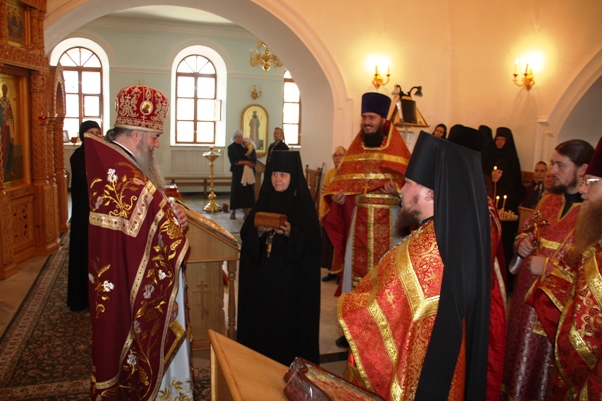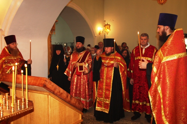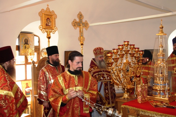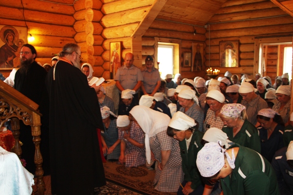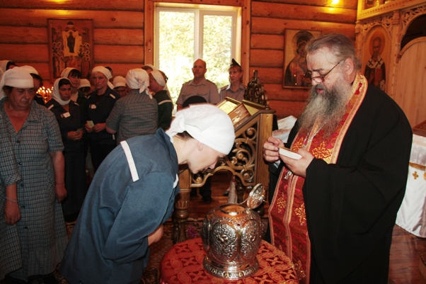 Алатырцы вновь поклонились мощам священномученика Илии Хормалинского5 августа праздновалось 50-летие исправительной женской колонии № 2, на которое был приглашен архимандрит Василий, имеющий награду УИС. В период служения в Алатыре о. Василий опекал осужденных этого учреждения и с его участием в нем был возведен храм. В тот же день отец Василий, а также иеродиакон Иосиф и священники Алатырского благочиния служили всенощное бдение в Иверском храме Алатыря священномученику Илие Хормалинскому и святым мученикам Борису и Глебу. Сюда были принесены святые мощи, которые на другой день после Божественной литургии были торжественно принесены Крестным ходом в Киево-Николаевский женский монастырь. Примечательно, что от бывшей тюрьмы, где содержался мученик Илия, мощи проследовали по улице Кирова в сторону НКВД по ул. Октябрьской революции, 25. Именно этой дорогой шел мученик на расстрел. Всенощное бдение возглавил гость из Троице-Сергиевой Лавры, настоятель Вифанского монастыря игумен Даниил. Ему сослужили священнослужители женского монастыря. Сестры и прихожане обители с благоговением поклонились честной главе святого. 7 августа Божественную литургию служили во главе с архимандритом Василием, который 5 лет подвизался на поприще священника этой обители. Великим событием для насельниц стало принесение мощей, тем более, что в обитель была передана на постоянное хранение частица мощей святого. По окончании литургии о. Василий произнес слово о святом Илие и вручил игумение Елисавете ковчег с мощами. Отец Даниил приветствовал матушку игумению с сестрами от братии Лавры и преподнес просфору. Вечером честная глава святого Илии была доставлена в женскую колонию № 2 для поклонения осужденным верующим. Все смогли получить иконку святого и услышать слово утешения от о. Василия.