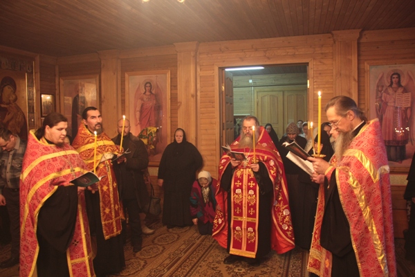 Служение архимандрита Василия в Цивильском монастыре23 февраля в Цивильском Тихвинском женском монастыре совершили храмовой праздник священномученику Харалампию, епископу Магнезийскому. По благословению правящего архиерея митрополита Варнавы возглавил богослужения -накануне вечером всенощное бдение и Божественную литургию в сам день праздника наместник Свято-Троицкого мужского монастыря г.Чебоксары архимандрит Василий (Паскье). Ему сослужили священнослужители III благочиния: настоятель Казанского храма города Цивильска протоиерей Валерий Иванов, настоятель Казанского храма города Козловка иерей Геннадий Поляков, братия Чебоксарского Свято-Троицкого мужского монастыря и Цивильской обители. За вечерней службой был пропет акафист святому. Праздничный молебен святому с Крестным ходом прошел при большом стечении верующих. По завершении богослужения отец Василий произнес слово назидания и поздравил матушку игумению Нину (Волкову) и сестер обители с престольным праздником. После слов благодарности со стороны игумении все были приглашены на монастырскую праздничную трапезу.