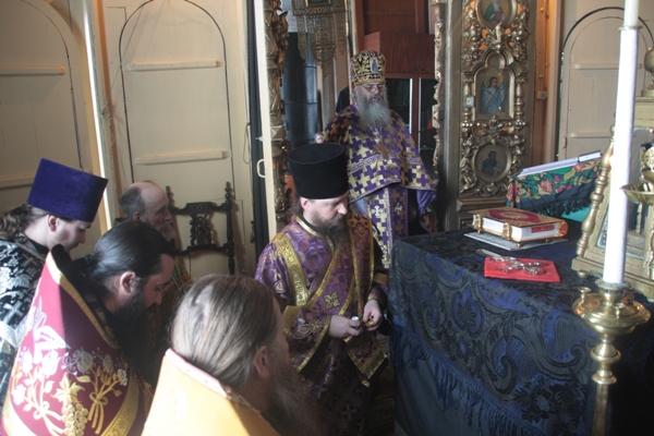 Возглавил Божественную литургию Преждеосвященных Даровпредседатель Епархиальной комиссии по канонизации святых архимандрит Василий (Паскье). Ему сослужили секретарь Комиссии иеродиакон Иосиф (Ключников), настоятель Свято-Троицкого собора с. Порецкое, благочинный IX округа протоиерей Павел Гуцаев, настоятель храма святых Первоверховных апостолов Петра и Павла с. Порецкое митрофорный протоиерей Владимир Ильин, настоятель храма святого апостола и Евангелиста Иоанна Богослова с. Антипинка (с. Выползово) протоиерей Сергий Канов и клирики благочиния. Накануне вечером в храме служили полиелейное богослужение. По завершении литургии был отслужен праздничный молебен святому. Было зачитано житие святого и отцом Василием произнесена проповедь на событие праздника.
