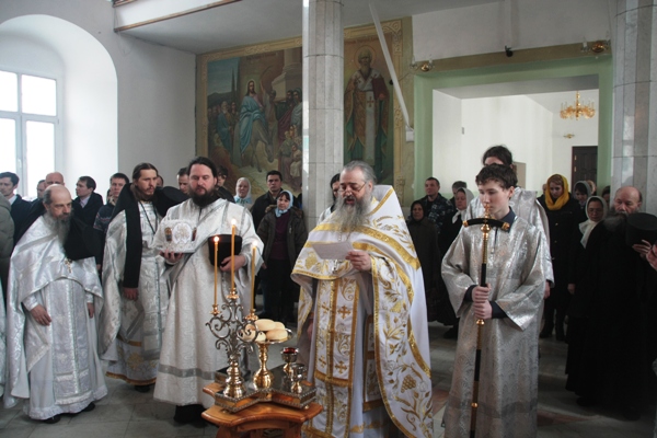 Дни Страстной седмицы Великого Поста в монастыреВ дни Страстной седмицы Великого Поста в нашем монастыре совершали Богослужения. В понедельник, вторник, среду совершили литургии Преждеосвященных Даров, которые возглавил отец наместник. В четверг литургию служили все священнослужители монастыря. Приобщались все присутствующие в храме из 3 –х чаш. В Великий Пяток великие часы служили также соборно во главе с отцом Василием. В этот же день состоялся чин изнесения плащаницы Г.И.Х. и ночью чин погребения Господа И.Х. В субботу утром совершили литургию и по ее окончании освящение хлебов и вина. Днем началось освящение пасхальных яиц и куличей. | |||