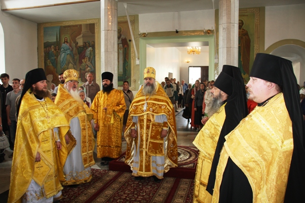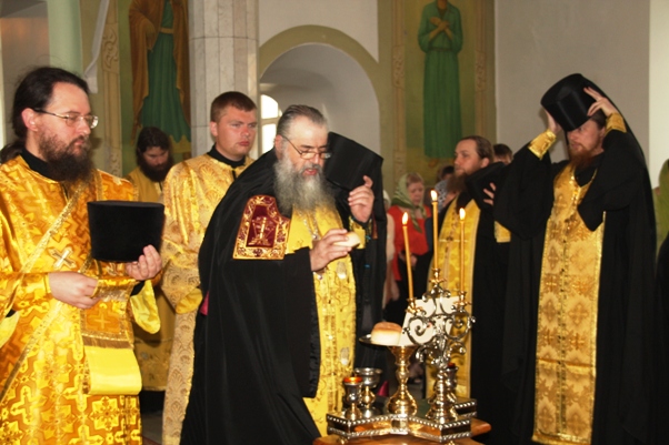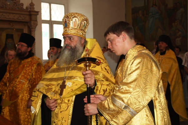 Служение митрополита Варнавы в праздник Русских святыхВ Неделю всех святых, в земле Российской просиявших в нашем монастыре было совершено праздничное богослужение. 17 июня Божественную литургию возглавил Высокопреосвященнейший митрополит Варнава, а накануне вечером всенощное бдение - наместник обители архимандрит Василий. Вечером имена всех русских святых были возглашены на особом прошении в чине литии. За Божественной литургией Владыке сослужил настоятель Введенского кафедрального собора протоиерей Геннадий Антонов, клирик того же храма протоиерей Михаил Степанов и братия обители в священном сане. Был отслужен молебен всем русским святым. За литургией была совершена хиротония псаломщика с. Выползово Порецкого района Анатолия Шестопалова в сан диакона. Затем Его Высокопреосвященство почтил своим присутствием братскую трапезу. По совершении чина Панагии была сделана общее фото братии с Высокопреосвященнейшим Владыкой.